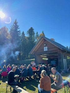 Dieses Jahr spielte auch das Wetter mit: Bei strahlendem Sonnenschein und angenehmen Temperaturen zeigte sich der Herbst von seiner schönsten Seite. Zurück am Langlaufzentrum warteten eine warme Suppe, Wurst, Brot, Kaffee und Kuchen auf die HelferInnen. Am Lagerfeuer ließ man den erfolgreichen Tag in geselliger Runde ausklingen.